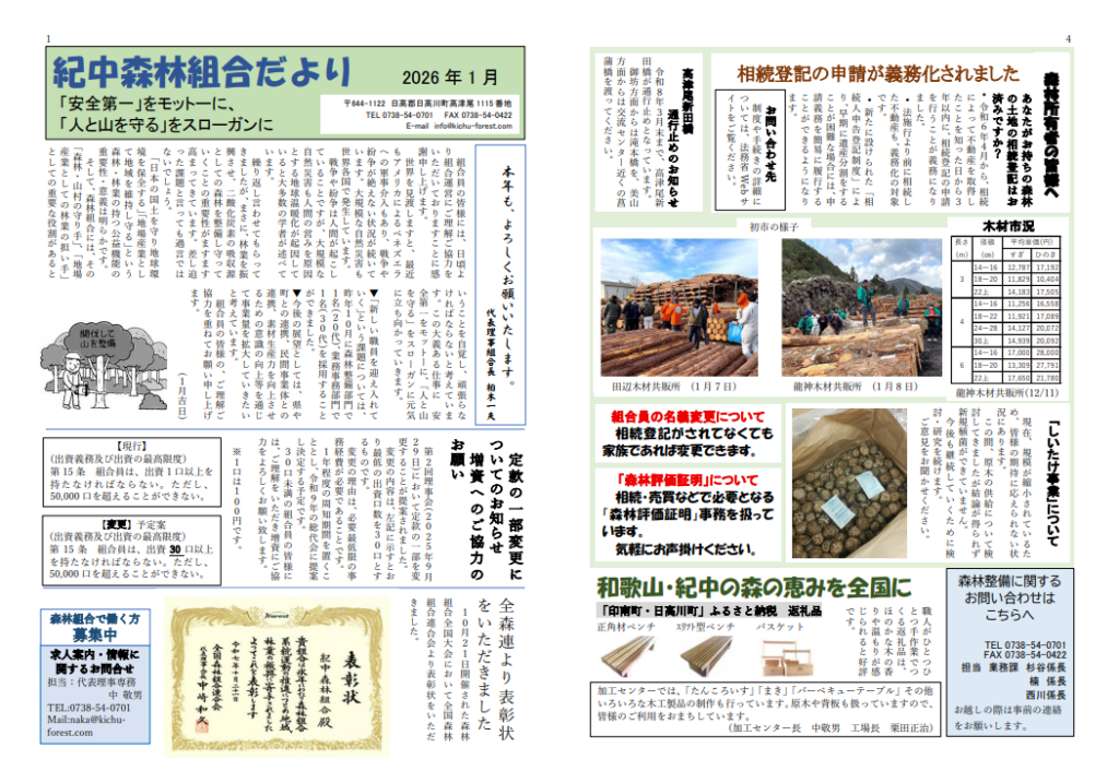 紀中森林組合では年に2回、「紀中森林組合だより」を発行しております。